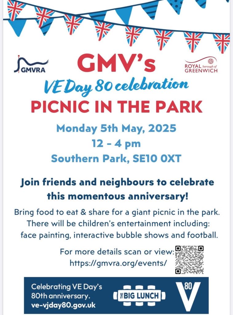 Join friends and neighbours in celebrating the 80th anniversary of VE day on Monday 5th May from 12 noon – 4 pm in Southern Park.